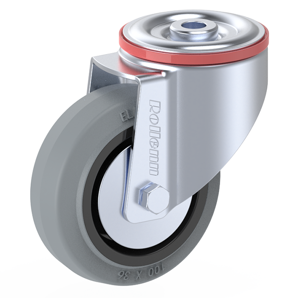 | Item Name | 100X36mm Swivel With Bolt Hole Castor, Grey Elastic Rubber With Black Nylon Rim Roller Bearing,With Thread Guards | ||