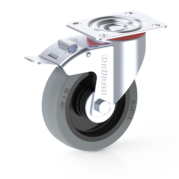 | Item Name | 125X36mm Braked swivel castor, Grey Elastic rubber, black Nylon rim, roller bearing, with hub caps | ||
