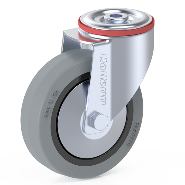 | Item Name | 125X36mm swivel castor, Grey Elastic rubber, black Nylon rim, roller bearing,with thread guards | ||