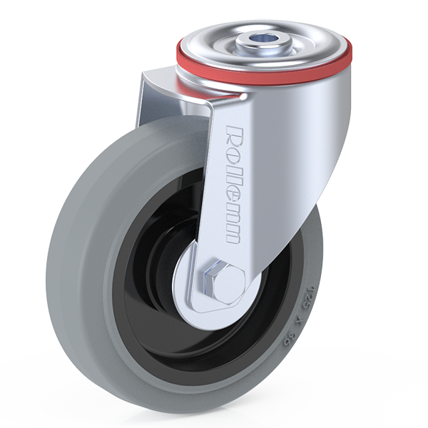 | Item Name | 125X36mm swivel castor, Grey Elastic rubber, black Nylon rim,plain bearing,with hub caps | ||