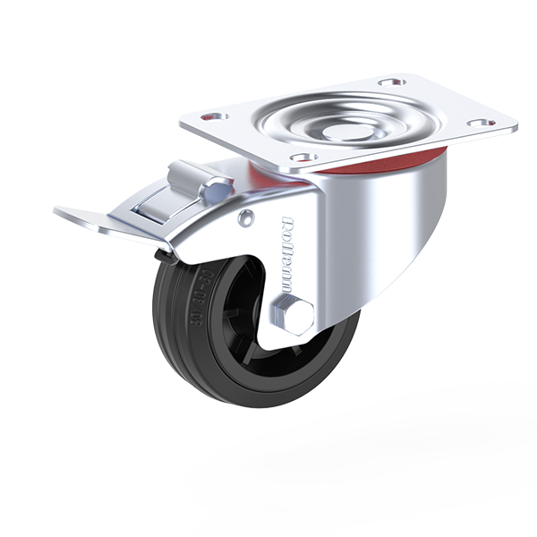 Item Name | 80x30mm Braked Swivel Castor With Top Plate,Black Rubber,Black PP Rim,Roller Bearing | ||