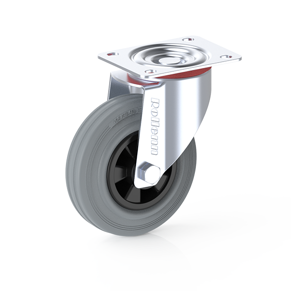 | Item Name | 125x38mm Swivel Castor With Top Plate ,Grey Rubber ,Black PP Rim,Plain Bearing | ||