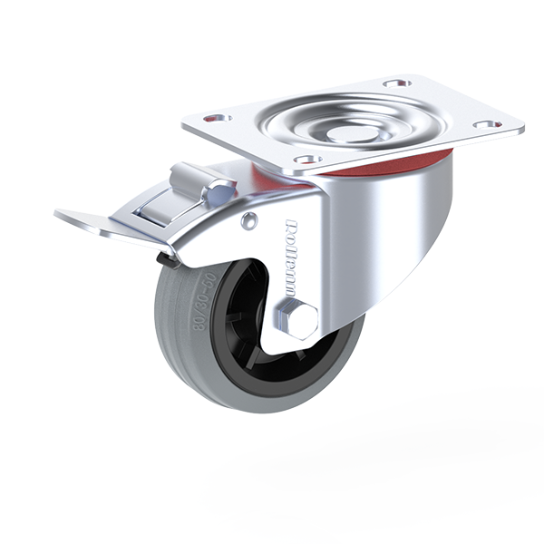 Item Name | 80x30mm Braked Swivel Castor With Top Plate ,Grey Rubber ,Black PP Rim,Roller Bearing | ||