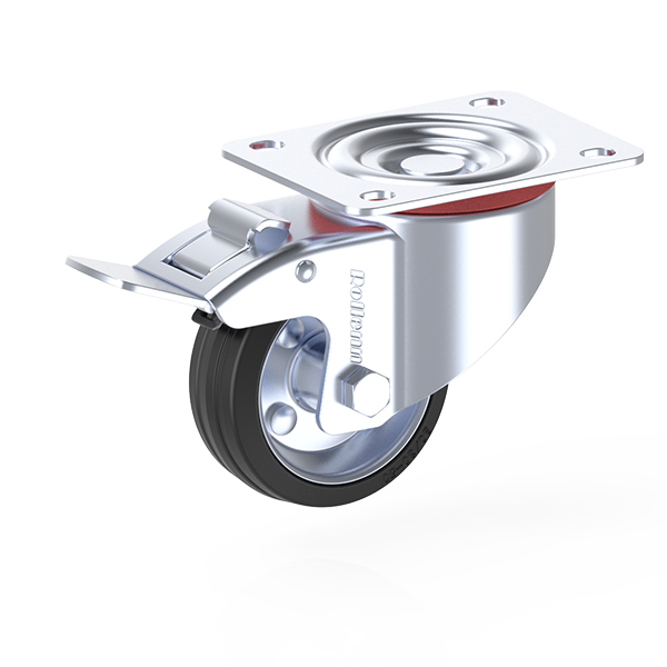 Item Name | 80x30mm Braked Swivel Castor With Top Plate,Black Rubber Wheel,Steel Rim,Roller Bearing | ||
