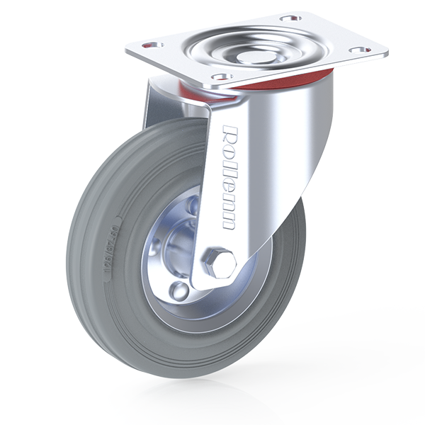 Item Name | 125x38mm Swivel Castor With Top Plate ,Grey Rubber Wheel,Steel Rim,Roller Bearing | ||