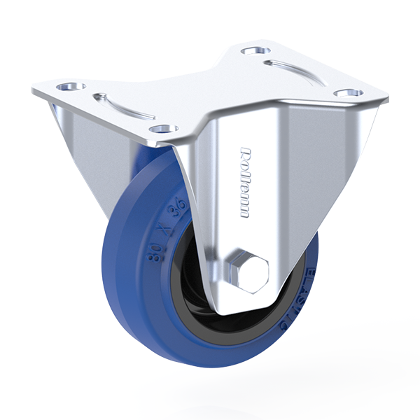 Item Name | 80X36mm Fixed Castor, Blue Elastic Rubber With Black Nylon Rim, Roller Bearing | ||