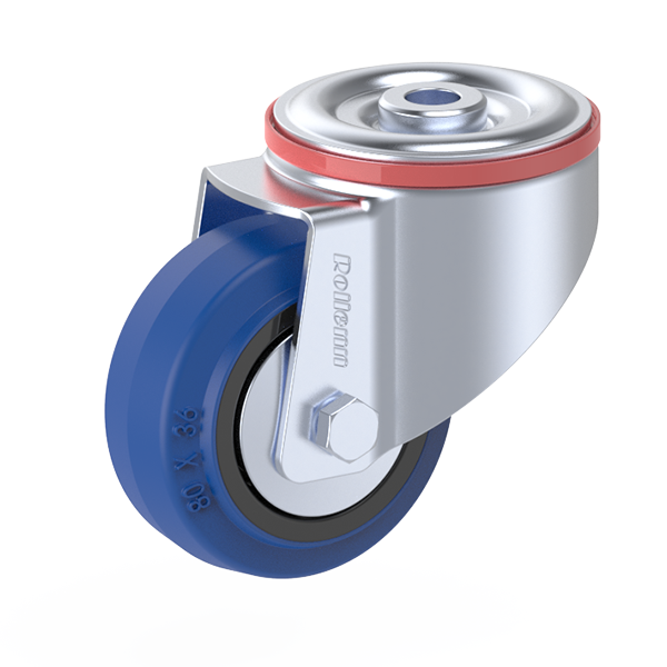 Item Name | 80X36mm swivel with bolt hole castor, blue Elastic rubber, black Nylon rim, roller bearing, , with thread guards | ||