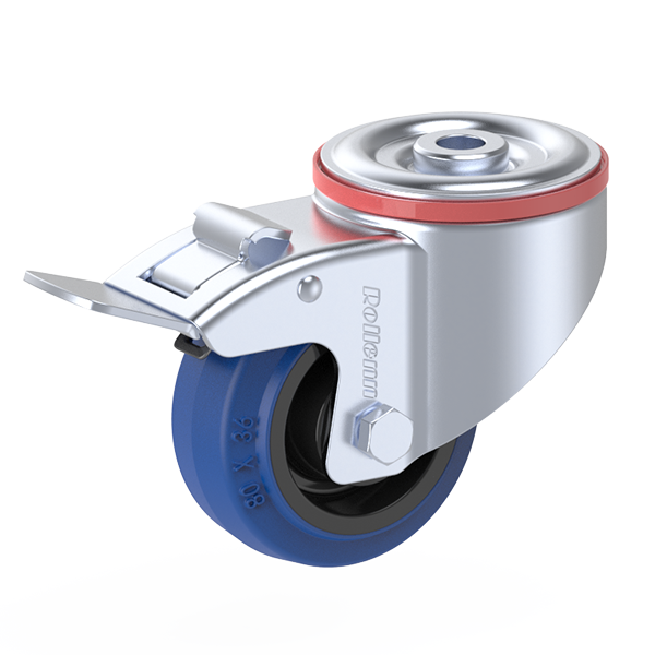 Item Name | 80X36mm Braked swivel with bolt hole castor, blue elastic rubber, black Nylon rim, roller bearing | ||