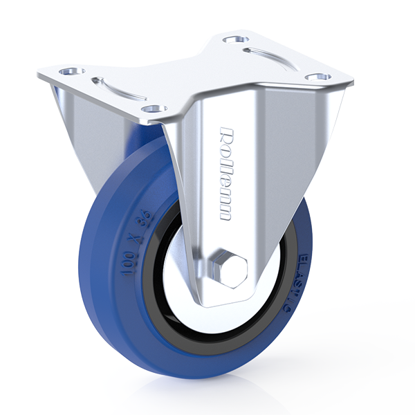 | Item Name | 100X36mm Fixed Castor, Blue Elastic Rubber With Black Nylon Rim,Roller Bearing,With Thread Guards | ||