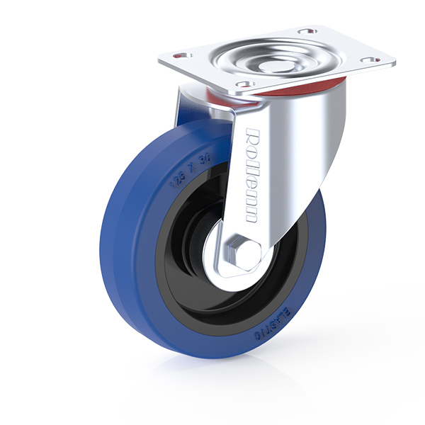 | Item Name | 125X36mm Swivel Castor, Blue Elastic rubber, black Nylon rim, Roller bearing,with Hub Caps | ||