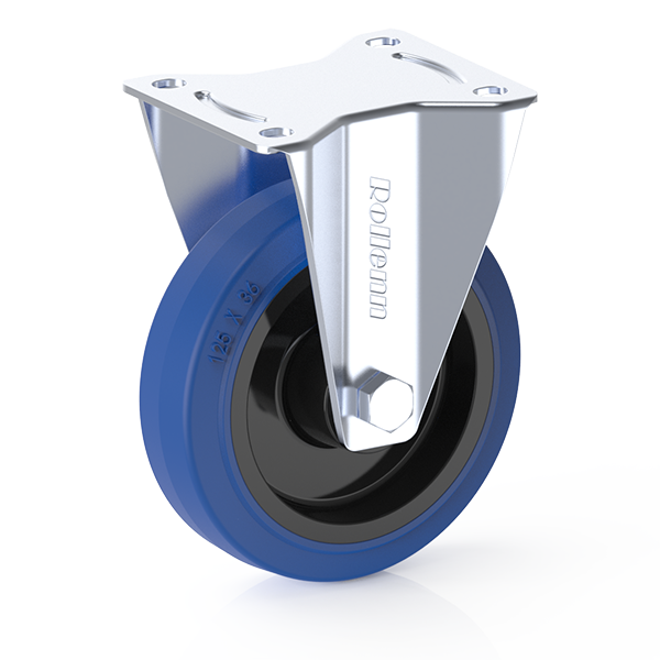 | Item Name | 125X36mm fixed castor, Blue Elastic rubber, black Nylon rim, roller bearing | ||