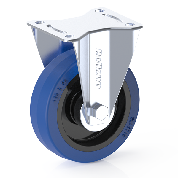 | Item Name | 125X36mm Fixed casters,Blue Elastic rubber, black Nylon rim roller bearing,with hub caps | ||