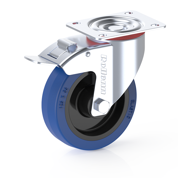 | Item Name | 125X36mm Braked swivel castor, Blue Elastic rubber, black Nylon rim, Plain bore | ||