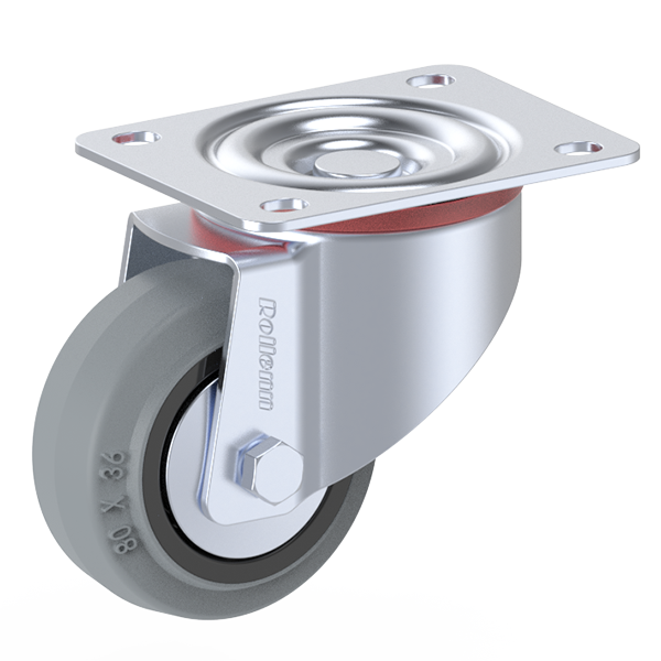 Item Name | 80X36mm Swivel Castor, Grey Elastic Rubber With Black Nylon Rim, Plain Bearing,With Thread Guards | ||