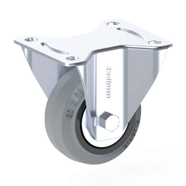 Item Name | 80X36mm Fixed Castor, Grey Elastic Rubber With Black Nylon Rim, Plain Bearing,With Thread Guards | ||