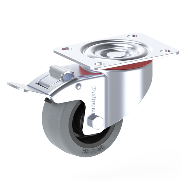 Item Name | 80X36mm Braked Swivel Castor, Grey Elastic Rubber, Black Nylon Rim, Plain Bearing | ||