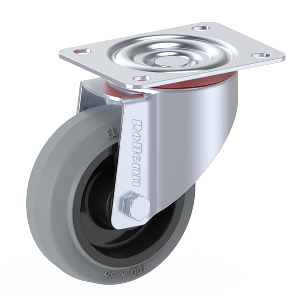 | Item Name | 100X36mm Swivel Castor, Grey Elastic Rubber With Black Nylon Rim, Roller Bearing | ||