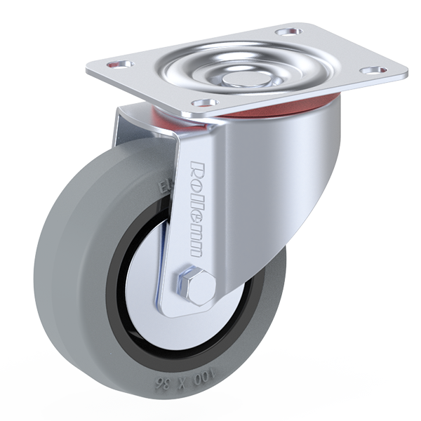 | Item Name | 100X36mm Swivel Castor, Grey Elastic Rubber With Black Nylon Rim, Roller Bearing,With Thread Guards | ||