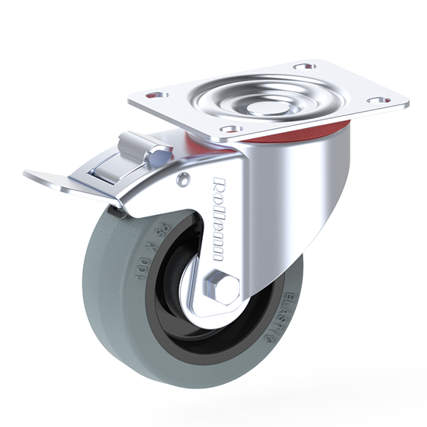| Item Name | 100X36mm Braked Swivel Castor, Grey Elastic Rubber With Black Nylon Rim ,Roller Bearing,With Hub Caps | ||