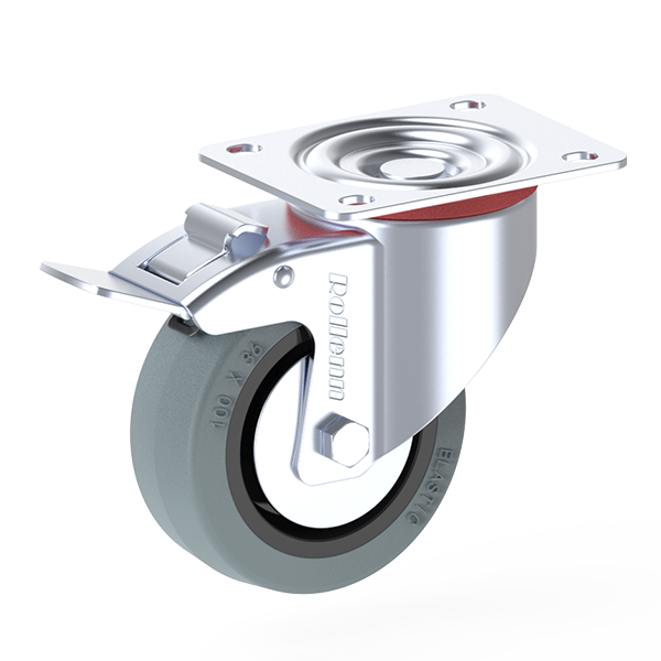 | Item Name | 100X36mm Braked Swivel Castor, Grey Elastic Rubber With Black Nylon Rim plain Bearing,With Thread Guards | ||