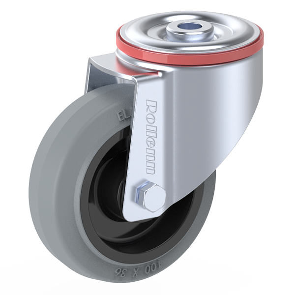 | Item Name | 100X36mm Swivel With Bolt Hole Castor, Grey Elastic Rubber With Black Nylon Rim Roller Bearing | ||